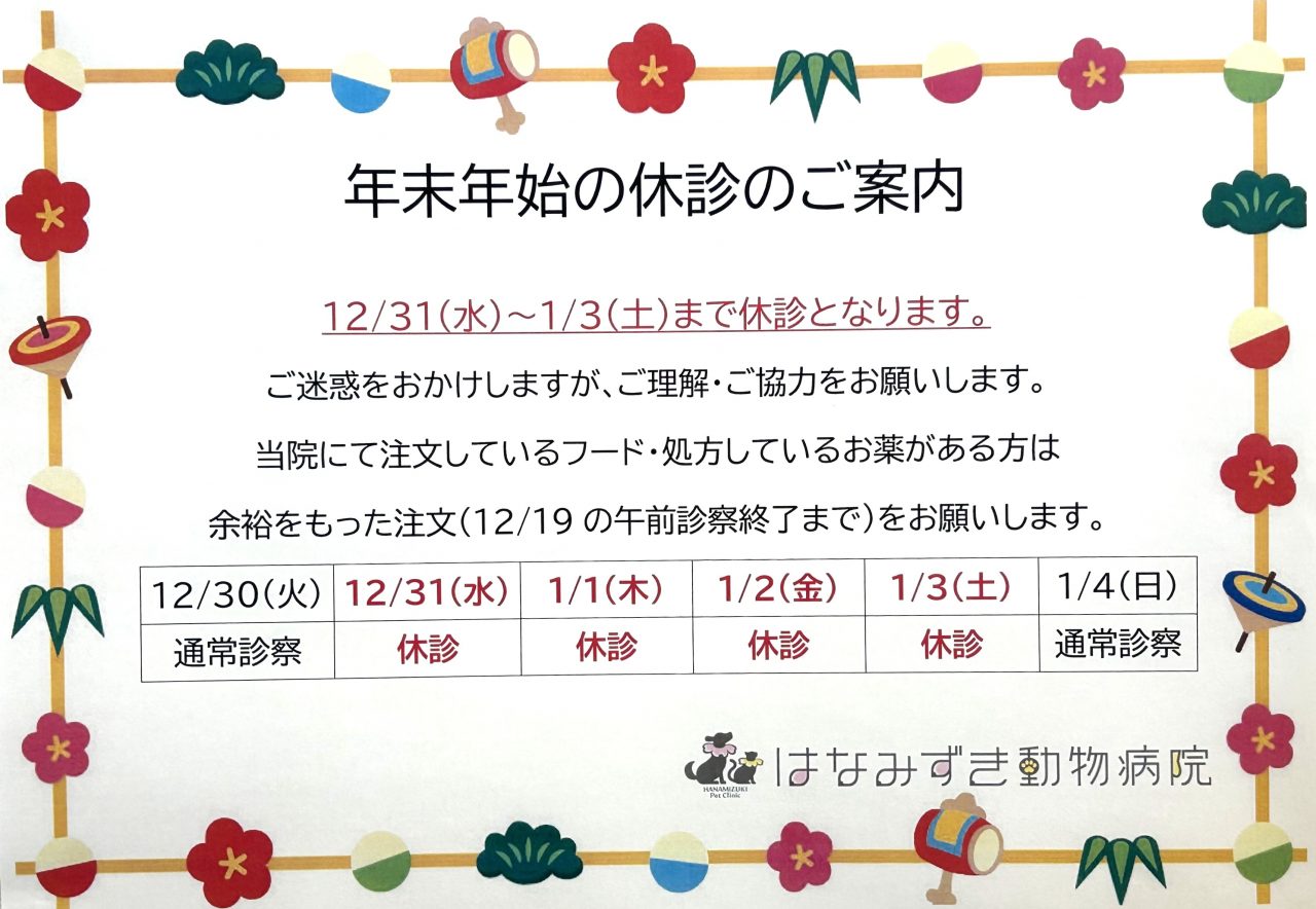 12/31(水)~1/3(土)の間は休診とさせていただきます。